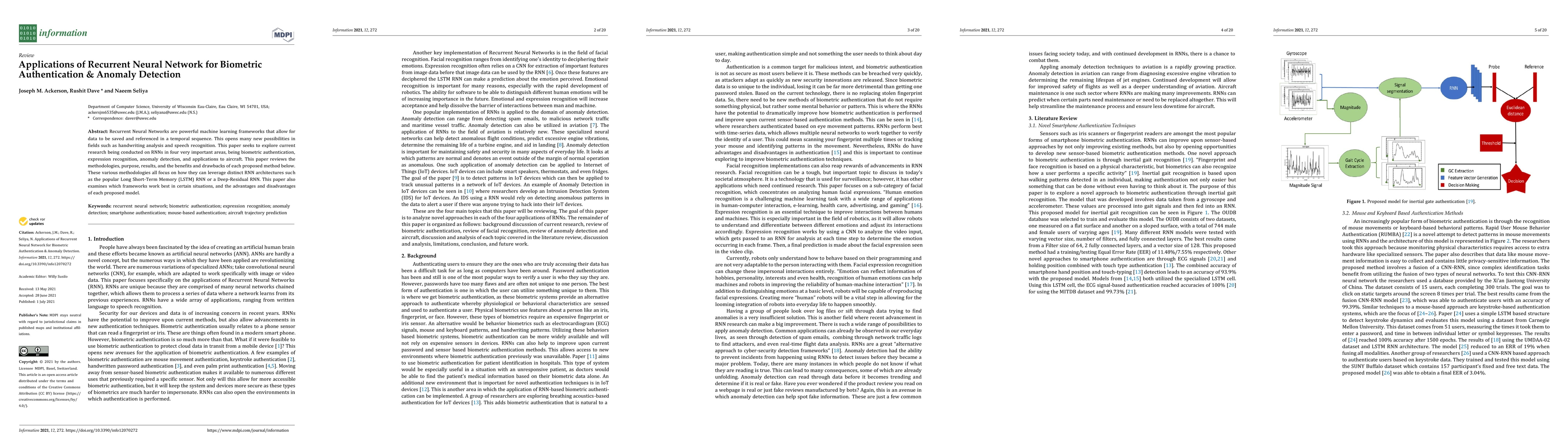 This paper explores the applications of Recurrent Neural Networks in biometric authentication, anomaly detection, expression recognition, and aircraft monitoring, highlighting their benefits and drawbacks.