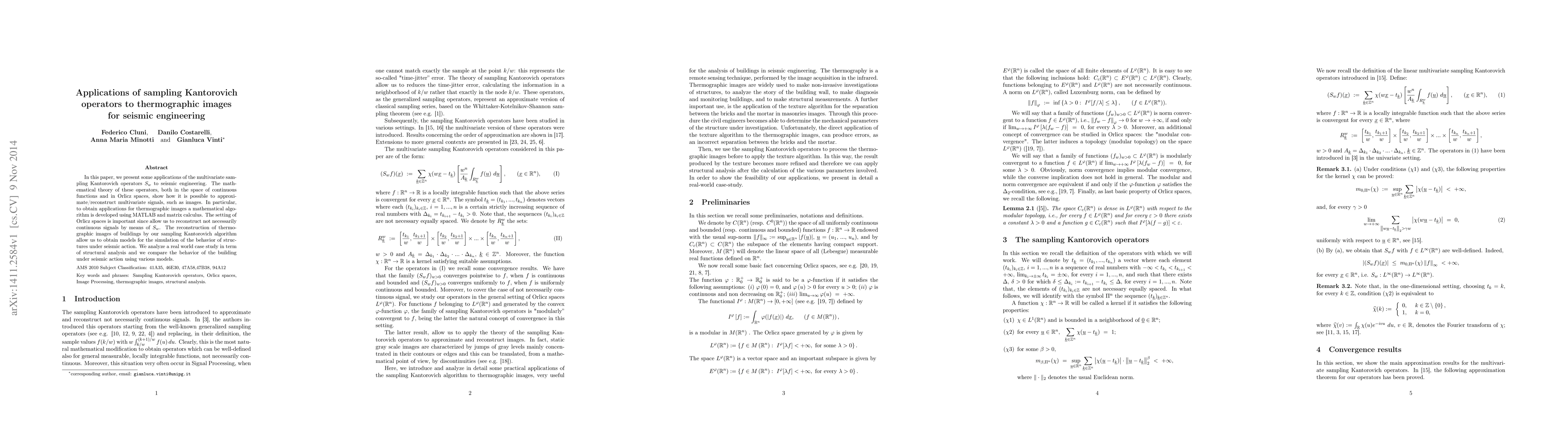 This paper explores the use of multivariate sampling Kantorovich operators for reconstructing thermographic images in seismic engineering. The developed algorithm, implemented in MATLAB, allows for the simulation of building behavior under seismic conditions, demonstrated through a real-world case study.