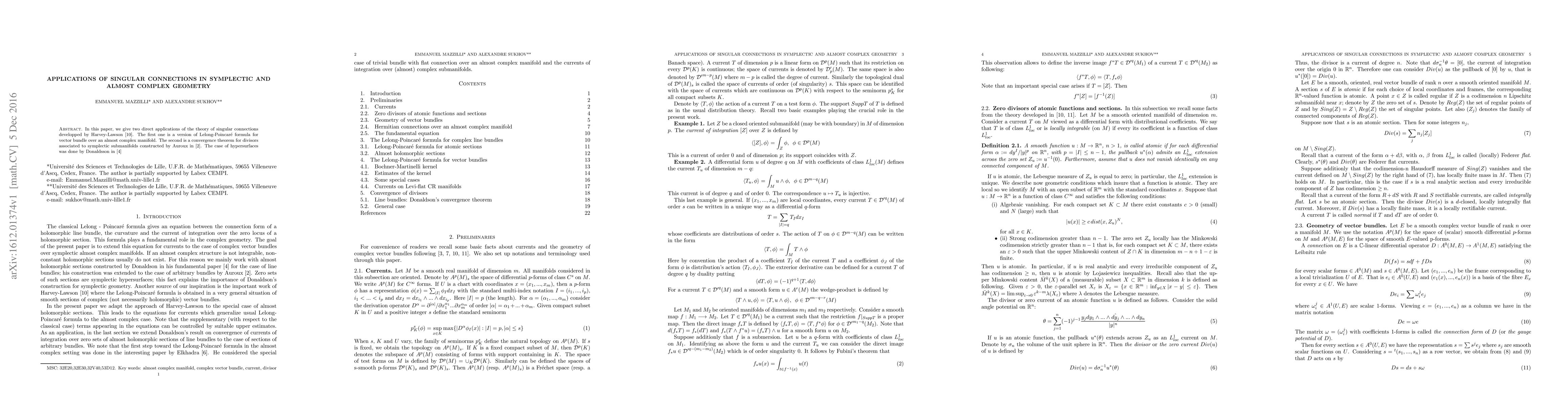 This paper applies Harvey-Lawson's theory of singular connections to derive a Lelong-Poincaré formula for vector bundles over almost complex manifolds and to prove a convergence theorem for divisors linked to Auroux's symplectic submanifolds.