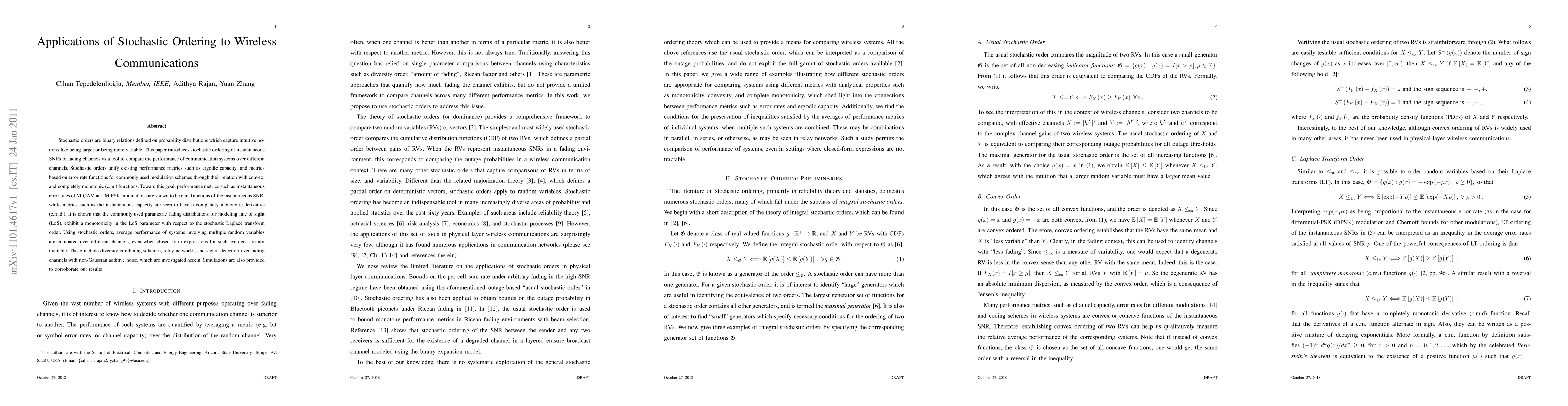 This paper introduces stochastic ordering as a tool to compare wireless communication system performance over different channels, allowing for comparison of systems with non-tractable averages.
