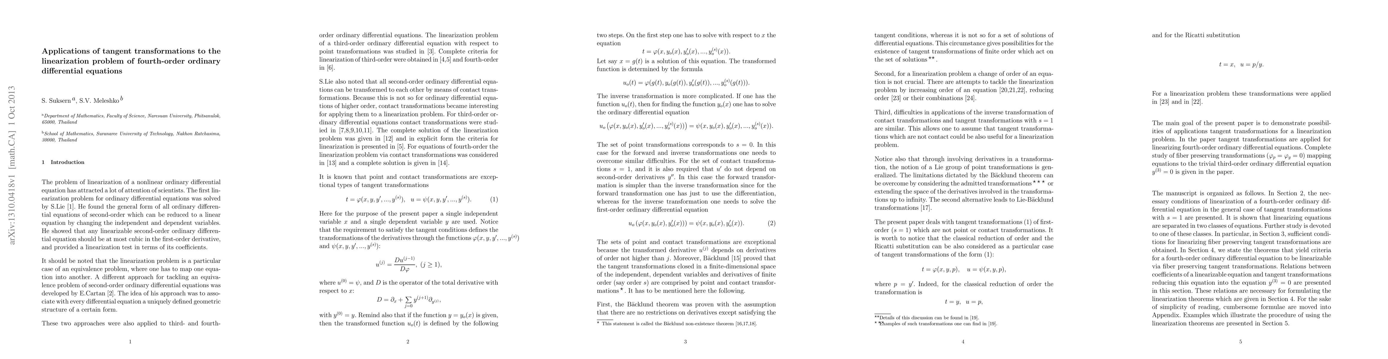 This paper introduces tangent transformations for linearizing fourth-order ordinary differential equations, extending existing methods. It provides criteria for linearizability, a linearization test, and explicit procedures for obtaining linearizing transformations.