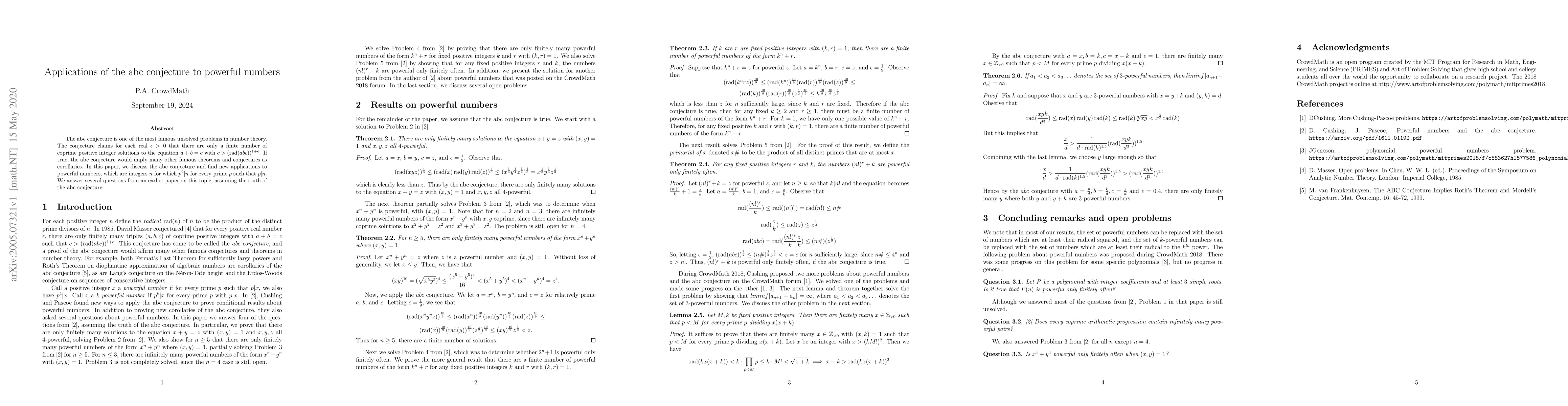 This paper explores the implications of the abc conjecture on powerful numbers, demonstrating new applications and answering questions regarding these integers, which are divisible by the square of every prime factor. It assumes the conjecture's validity to derive significant results.