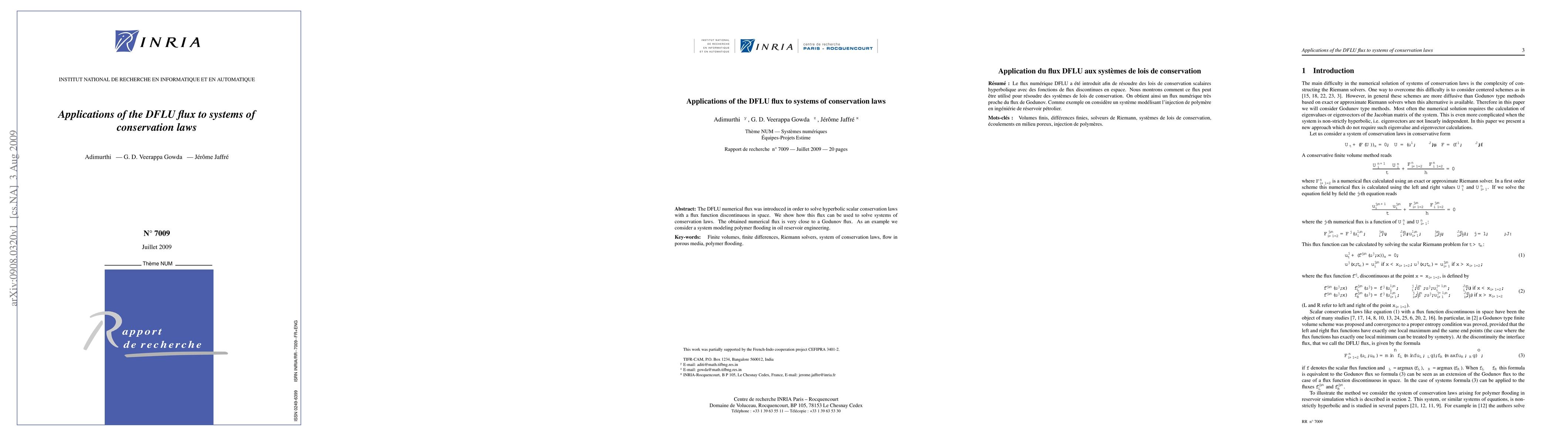 The DFLU numerical flux was introduced in order to solve hyperbolic scalar conservation laws with a flux function discontinuous in space. We show how this flux can be used to solve systems of conservation laws. The obtained numerical flux is very close to a Godunov flux. As an example we consider a system modeling polymer flooding in oil reservoir engineering.