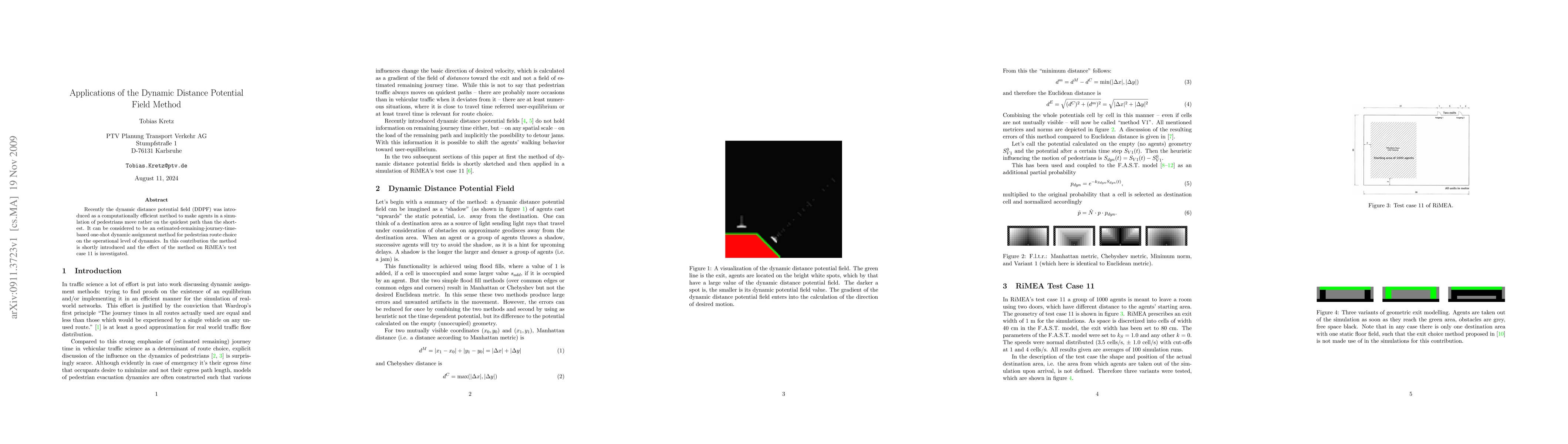 Recently the dynamic distance potential field (DDPF) was introduced as a computationally efficient method to make agents in a simulation of pedestrians move rather on the quickest path than the shortest. It can be considered to be an estimated-remaining-journey-time-based one-shot dynamic assignment method for pedestrian route choice on the operational level of dynamics. In this contribution the method is shortly introduced and the effect of the method on RiMEA's test case 11 is investigated.