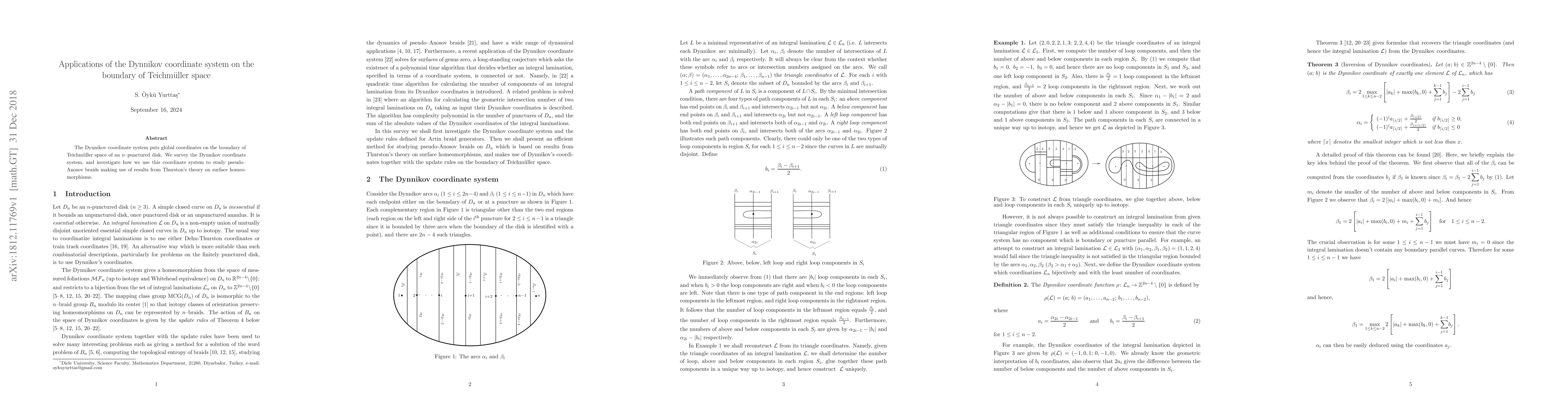 Summary: This paper surveys the Dynnikov coordinate system for the boundary of Teichmüller space of an $n$-punctured disk and explores its application in studying pseudo-Anosov braids through Thurston's theory on surface homeomorphisms.