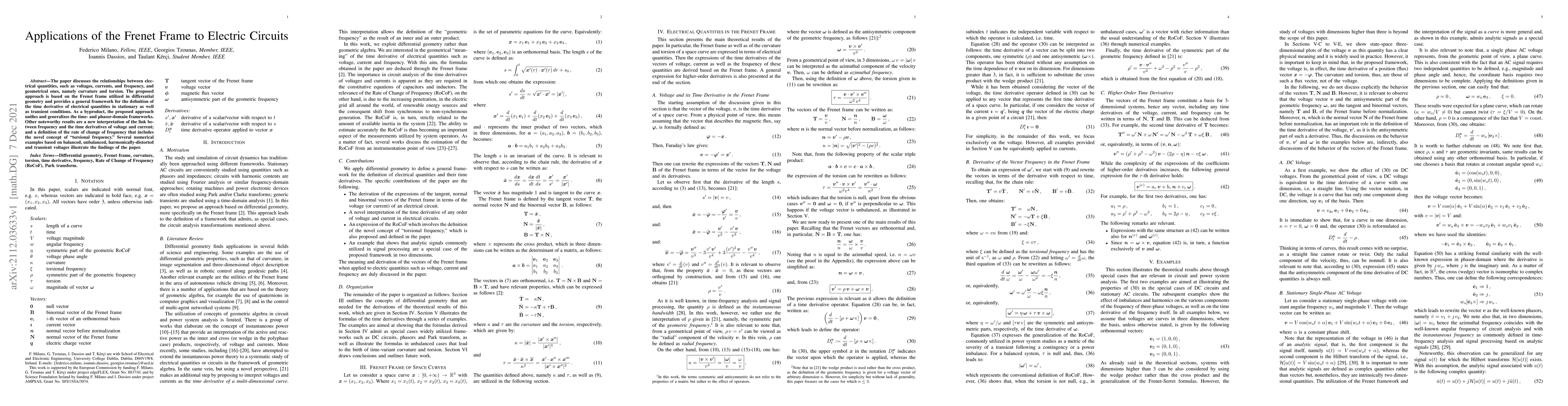 This paper applies Frenet frame concepts to electric circuits, unifying time- and phasor-domain frameworks, and introducing a new concept of torsional frequency that links frequency with voltage and current changes.
