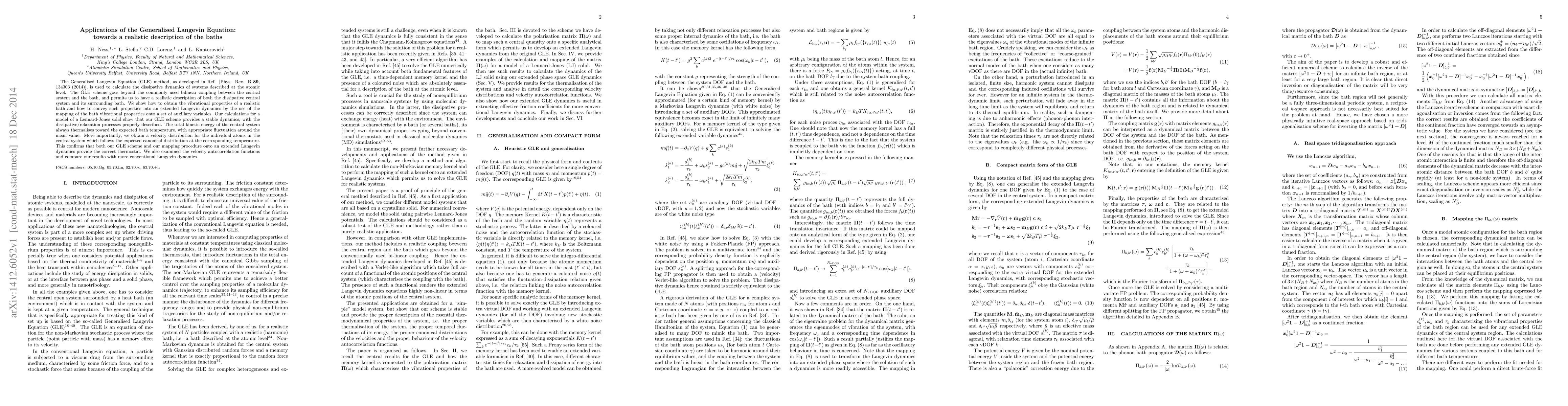 The Generalised Langevin Equation (GLE) method provides a realistic description of dissipative dynamics in atomic-level systems by extending beyond bilinear coupling. Our GLE scheme accurately models the vibrational properties of a surrounding bath and thermalises the central system's kinetic energy, confirming the correct thermostatic behavior.