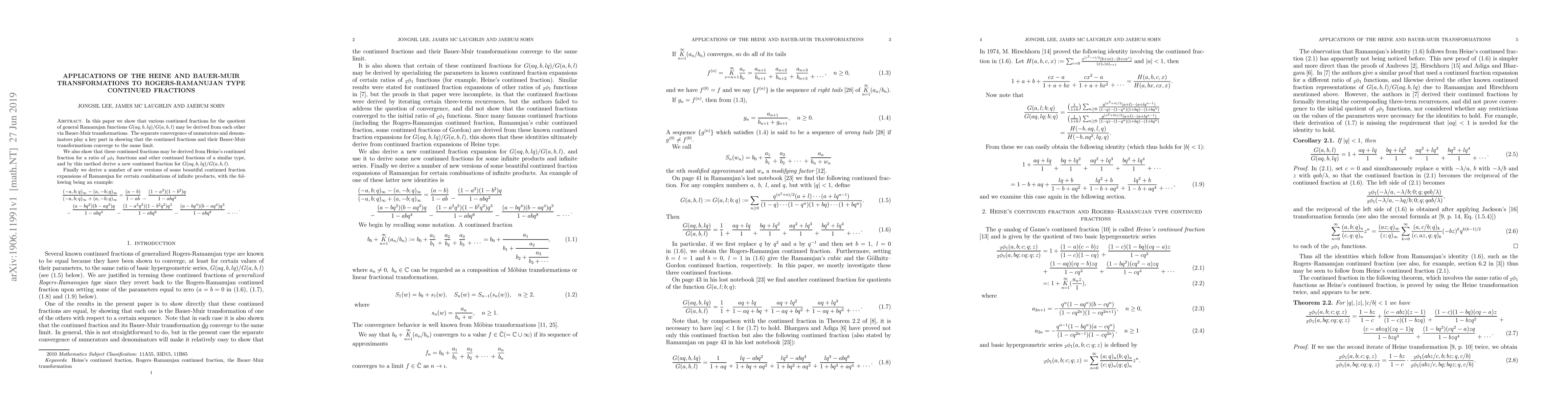 This paper demonstrates the derivation of various Rogers-Ramanujan type continued fractions using Bauer-Muir transformations and Heine's continued fraction. It shows that these transformations preserve convergence and introduces new continued fraction expansions for specific infinite products.