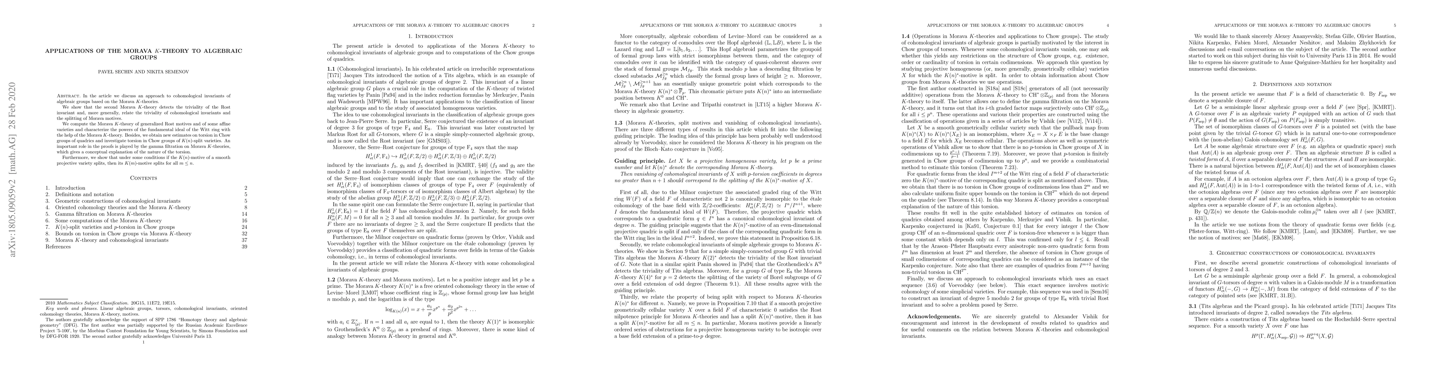 This paper explores the application of Morava $K$-theories to algebraic groups, demonstrating that the second Morava $K$-theory can determine the triviality of the Rost invariant and linking cohomological invariants' triviality to the splitting of Morava motives. It also introduces a gamma filtration on Morava $K$-theories to conceptually explain torsion phenomena.