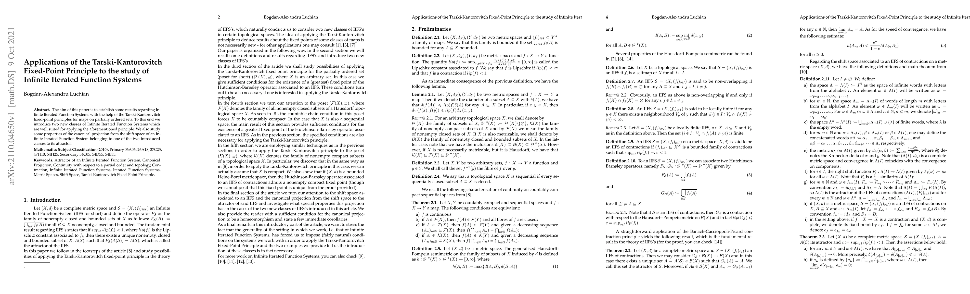 This paper applies the Tarski-Kantorovitch fixed-point principle to Infinite Iterated Function Systems, introducing two new classes suitable for this approach and examining properties of the projection from their shift spaces to their attractors.