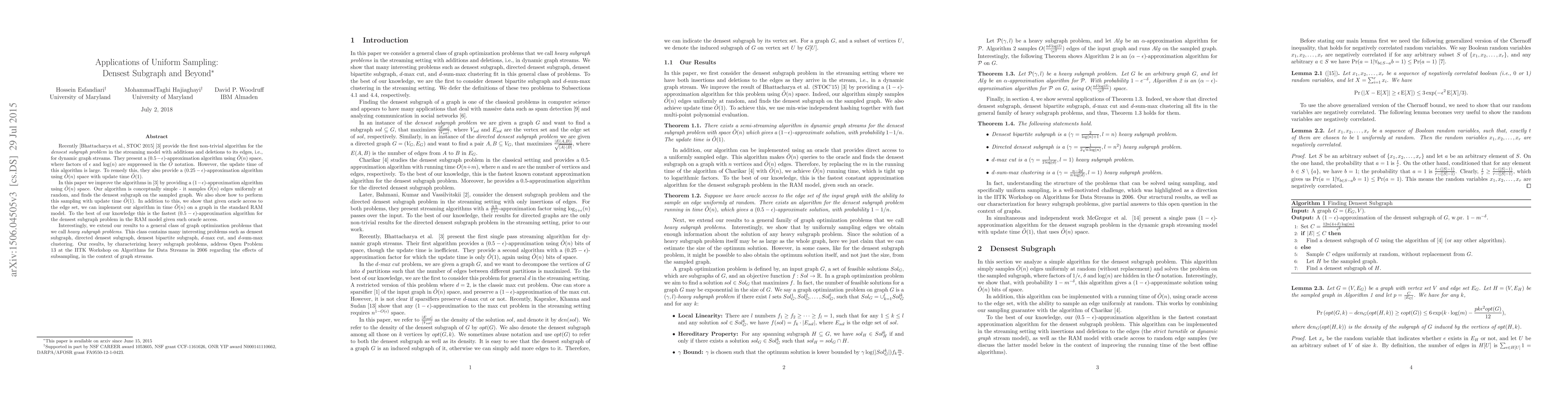 Recently [Bhattacharya et al., STOC 2015] provide the first non-trivial algorithm for the densest subgraph problem in the streaming model with additions and deletions to its edges, i.e., for dynamic graph streams. They present a $(0.5-\epsilon)$-approximation algorithm using $\tilde{O}(n)$ space, where factors of $\epsilon$ and $\log(n)$ are suppressed in the $\tilde{O}$ notation. However, the update time of this algorithm is large. To remedy this, they also provide a $(0.25-\epsilon)$-approximation algorithm using $\tilde{O}(n)$ space with update time $\tilde{O}(1)$. In this paper we improve the algorithms by Bhattacharya et al. by providing a $(1-\epsilon)$-approximation algorithm using $\tilde{O}(n)$ space. Our algorithm is conceptually simple - it samples $\tilde{O}(n)$ edges uniformly at random, and finds the densest subgraph on the sampled graph. We also show how to perform this sampling with update time $\tilde{O}(1)$. In addition to this, we show that given oracle access to the edge set, we can implement our algorithm in time $\tilde{O}(n)$ on a graph in the standard RAM model. To the best of our knowledge this is the fastest $(0.5-\epsilon)$-approximation algorithm for the densest subgraph problem in the RAM model given such oracle access. Further, we extend our results to a general class of graph optimization problems that we call heavy subgraph problems. This class contains many interesting problems such as densest subgraph, directed densest subgraph, densest bipartite subgraph, $d$-cut and $d$-heavy connected component. Our result, by characterizing heavy subgraph problems, partially addresses open problem 13 at the IITK Workshop on Algorithms for Data Streams in 2006 regarding the effects of subsampling in this context.