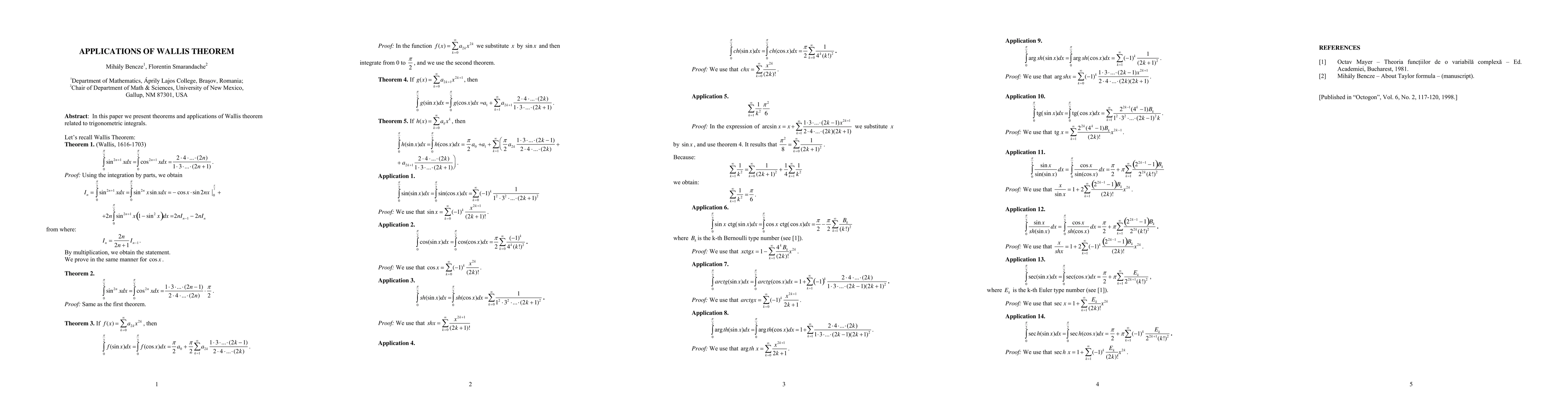 In this paper we present theorems and applications of Wallis theorem related to trigonometric integrals.