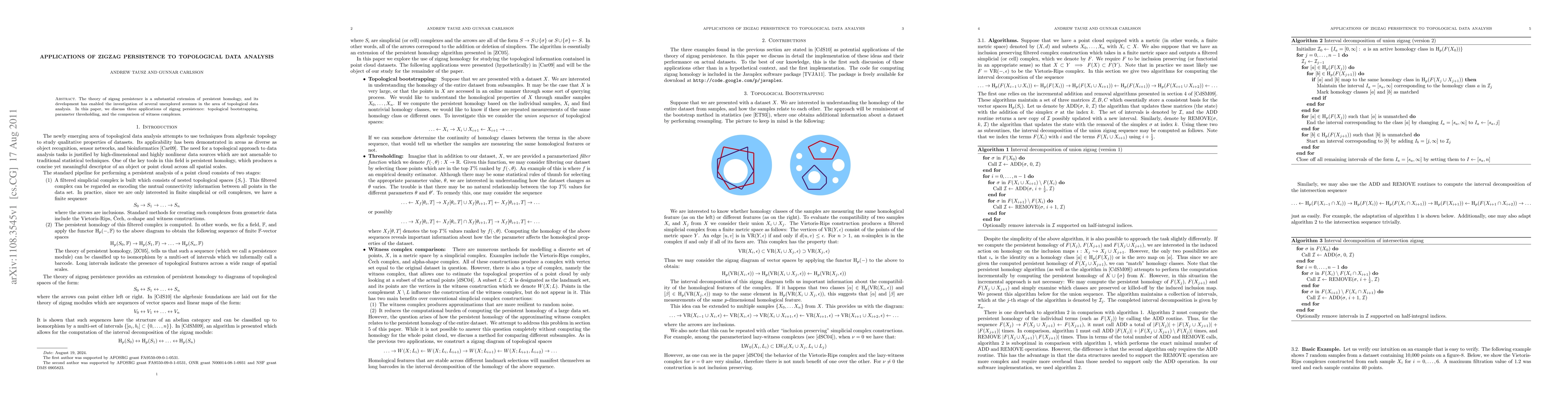 This paper explores zigzag persistence as an advanced tool in topological data analysis, highlighting its applications in topological bootstrapping, parameter thresholding, and the comparison of witness complexes.