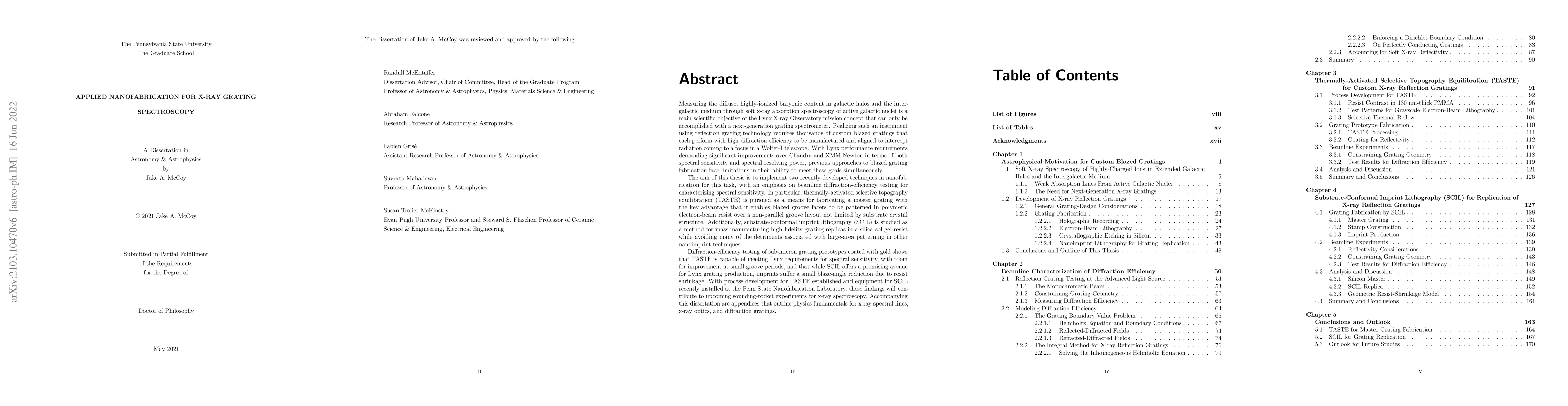This research explores advanced nanofabrication techniques for producing high-efficiency gratings essential for the Lynx X-ray Observatory's soft x-ray absorption spectroscopy. It employs thermally-activated selective topography equilibration (TASTE) for master grating fabrication and substrate-conformal imprint lithography (SCIL) for mass production of grating replicas, demonstrating promising results for spectral sensitivity and diffraction efficiency.