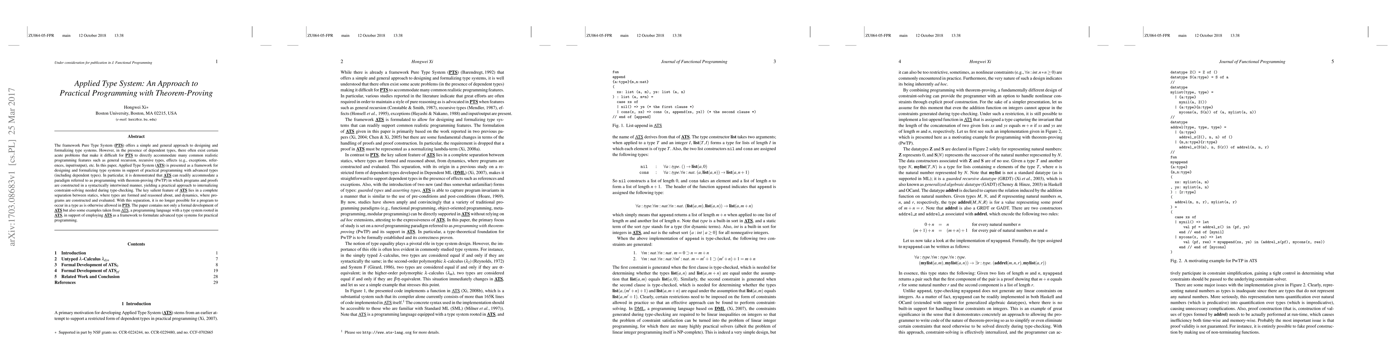 A new framework called Applied Type System (ATS) is proposed to support practical programming with advanced types, including dependent types, in a way that can accommodate common features like general recursion and effects.