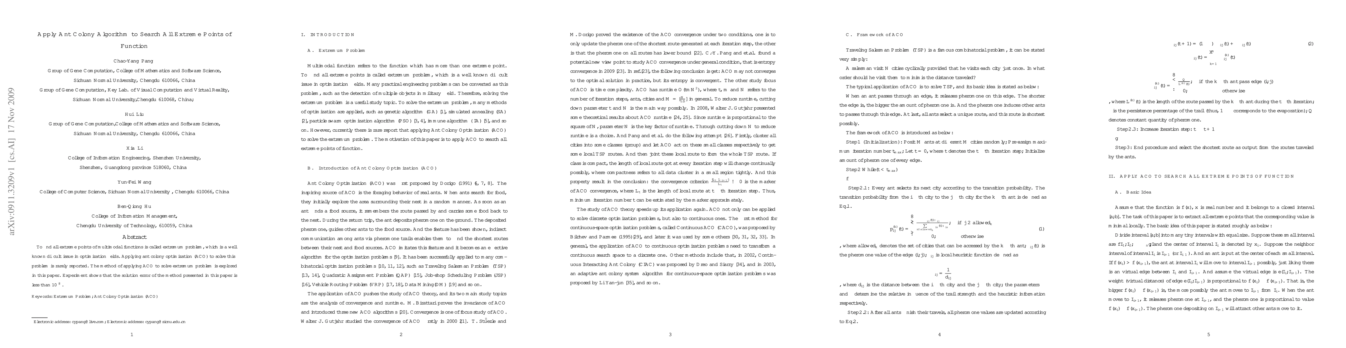 To find all extreme points of multimodal functions is called extremum problem, which is a well known difficult issue in optimization fields. Applying ant colony optimization (ACO) to solve this problem is rarely reported. The method of applying ACO to solve extremum problem is explored in this paper. Experiment shows that the solution error of the method presented in this paper is less than 10^-8. keywords: Extremum Problem; Ant Colony Optimization (ACO)