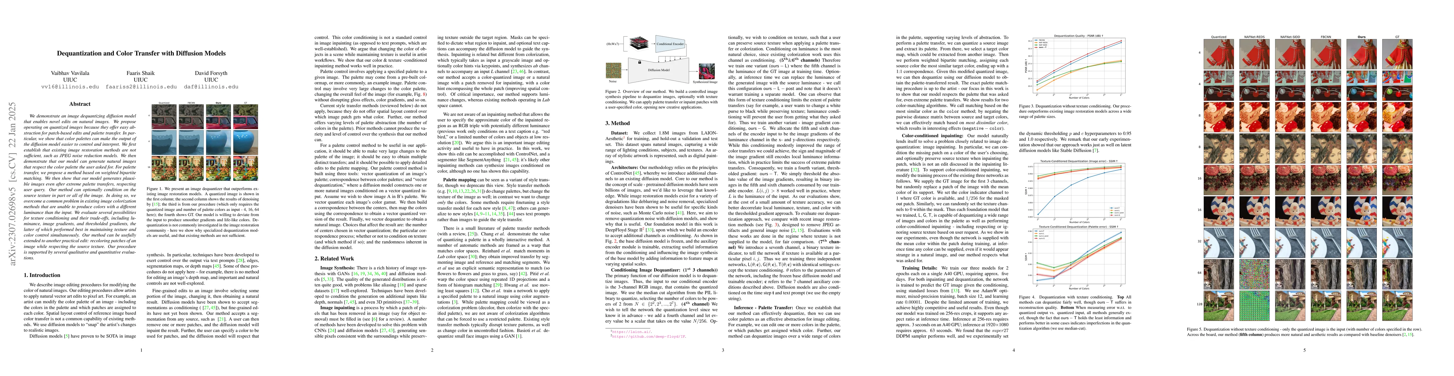This work is novel because it demonstrates the effectiveness of dequantization in image processing tasks, while also providing a flexible and creative approach to texture conditioning.