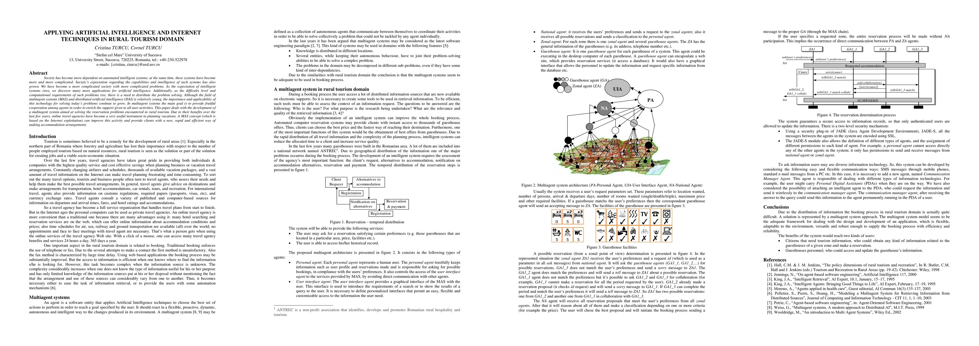 Society has become more dependent on automated intelligent systems, at the same time, these systems have become more and more complicated. Society's expectation regarding the capabilities and intelligence of such systems has also grown. We have become a more complicated society with more complicated problems. As the expectation of intelligent systems rises, we discover many more applications for artificial intelligence. Additionally, as the difficulty level and computational requirements of such problems rise, there is a need to distribute the problem solving. Although the field of multiagent systems (MAS) and distributed artificial intelligence (DAI) is relatively young, the importance and applicability of this technology for solving today's problems continue to grow. In multiagent systems, the main goal is to provide fruitful cooperation among agents in order to enrich the support given to all user activities. This paper deals with the development of a multiagent system aimed at solving the reservation problems encountered in rural tourism. Due to their benefits over the last few years, online travel agencies have become a very useful instrument in planning vacations. A MAS concept (which is based on the Internet exploitation) can improve this activity and provide clients with a new, rapid and efficient way of making accommodation arrangements.