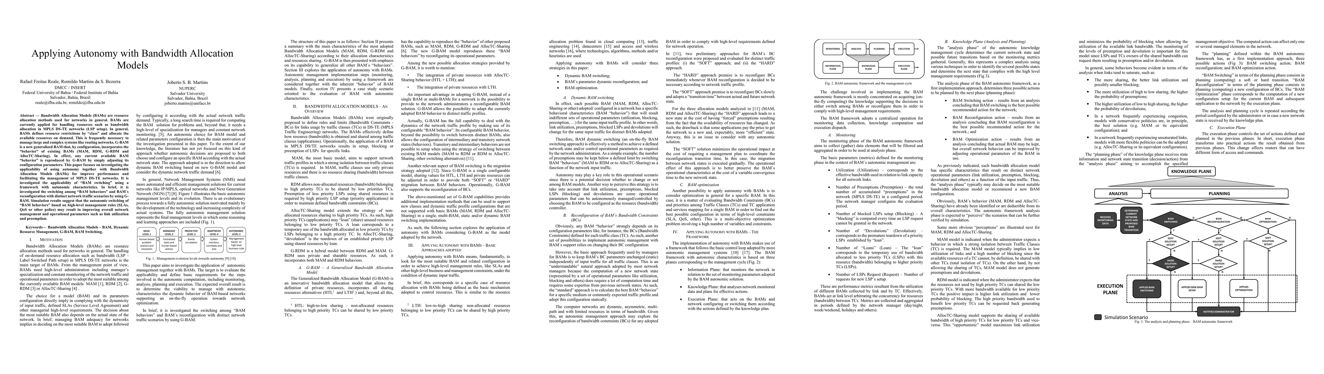 Bandwidth Allocation Models (BAMs) are resource allocation methods used for networks in general. BAMs are currently applied for handling resources such as bandwidth allocation in MPLS DS-TE networks (LSP setup). In general, BAMs defines resource restrictions by class and allocate the available resources on demand. This is frequently necessary to manage large and complex systems like routing networks. GBAM is a new generalized BAM that, by configuration, incorporates the behavior of existing BAMs (MAM, RDM, G-RDM and AllocTC-Sharing). In effect, any current available BAM behavior is reproduced by G-BAM by simply adjusting its configuration parameters. This paper focuses on investigating the applicability of using autonomy together with Bandwidth Allocation Models (BAMs) for improve performance and facilitating the management of MPLS DS-TE networks. It is investigated the applicability of BAM switching using a framework with autonomic characteristics. In brief, it is investigated the switching among BAM behaviors and BAM reconfiguration with distinct network traffic scenarios by using GBAM. Simulation results suggest that the autonomic switching of BAM behaviors based on high-level management rules (SLAs, QoS or other police) may result in improving overall network management and operational parameters such as link utilization and preemption.