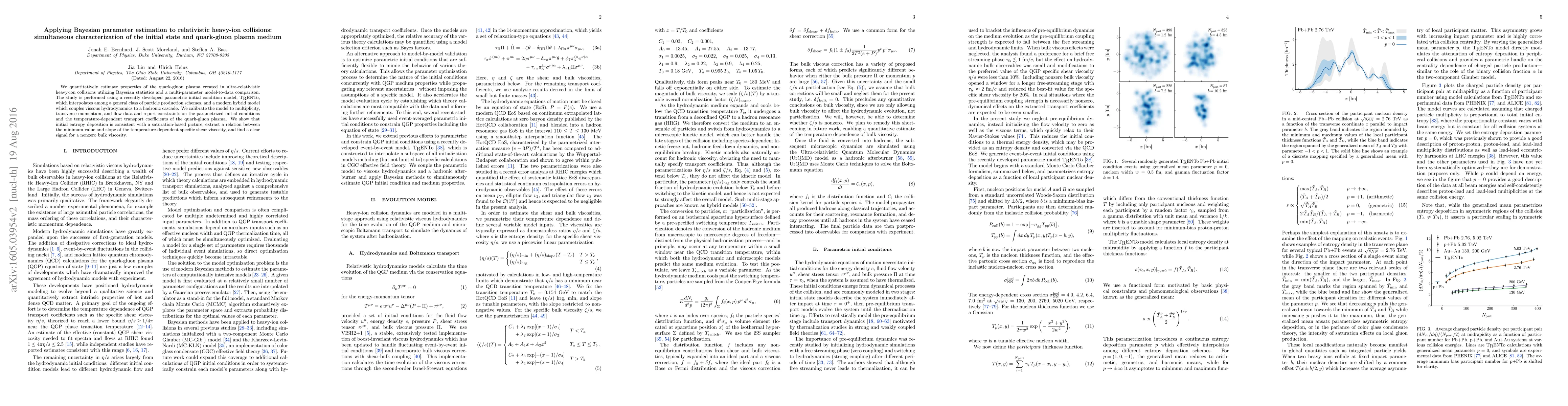 We quantitatively estimate properties of the quark-gluon plasma created in ultra-relativistic heavy-ion collisions utilizing Bayesian statistics and a multi-parameter model-to-data comparison. The study is performed using a recently developed parametric initial condition model, TRENTO, which interpolates among a general class of particle production schemes, and a modern hybrid model which couples viscous hydrodynamics to a hadronic cascade. We calibrate the model to multiplicity, transverse momentum, and flow data and report constraints on the parametrized initial conditions and the temperature-dependent transport coefficients of the quark-gluon plasma. We show that initial entropy deposition is consistent with a saturation-based picture, extract a relation between the minimum value and slope of the temperature-dependent specific shear viscosity, and find a clear signal for a nonzero bulk viscosity.
