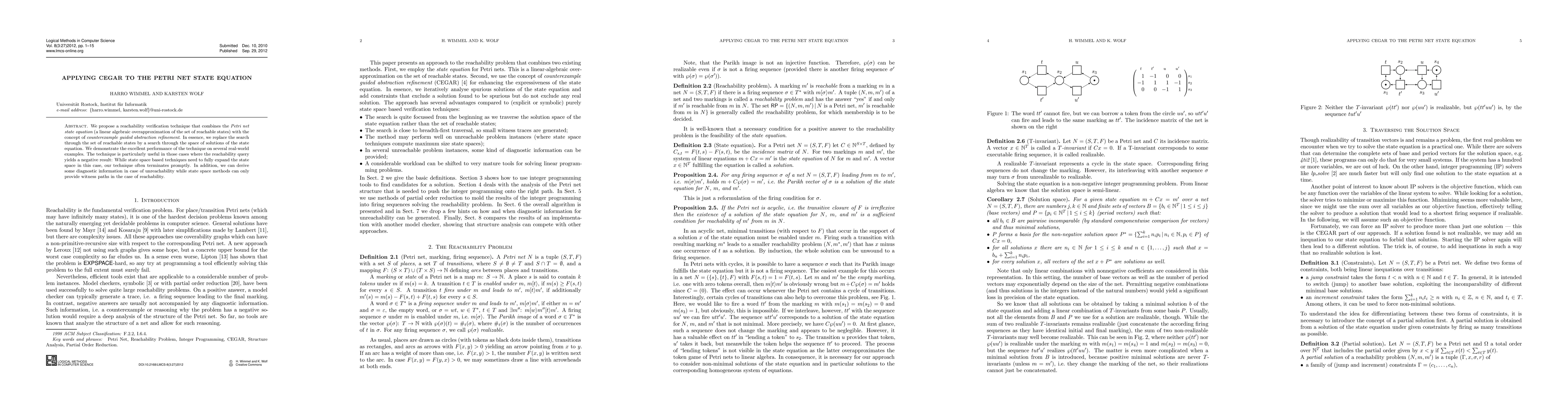 We propose a reachability verification technique that combines the Petri net state equation (a linear algebraic overapproximation of the set of reachable states) with the concept of counterexample guided abstraction refinement. In essence, we replace the search through the set of reachable states by a search through the space of solutions of the state equation. We demonstrate the excellent performance of the technique on several real-world examples. The technique is particularly useful in those cases where the reachability query yields a negative result: While state space based techniques need to fully expand the state space in this case, our technique often terminates promptly. In addition, we can derive some diagnostic information in case of unreachability while state space methods can only provide witness paths in the case of reachability.