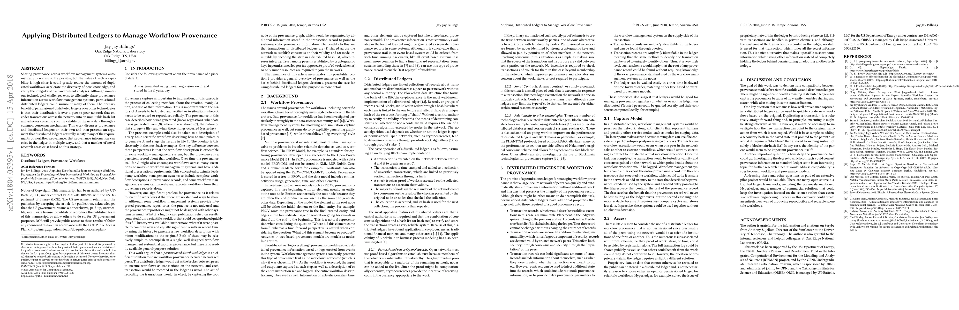 Sharing provenance across workflow management systems automatically is not currently possible, but the value of such a capability is high since it could greatly reduce the amount of duplicated workflows, accelerate the discovery of new knowledge, and verify the integrity of past and present analyses. Although numerous technological challenges exist to efficiently share provenance information across workflow management systems, permissioned distributed ledgers could surmount many of them. The primary benefit of permissioned distributed ledgers over other technologies is that their distribution is over a peer-to-peer network that encodes transactions across the network into an immutable hash list and achieves consensus on the validity of the new data through a common consensus mechanism. This work discusses provenance and distributed ledgers on their own and then presents an argument that distributed ledgers naturally satisfy many of the requirements of workflow provenance, that provenance information can exist in the ledger in multiple ways, and that a number of novel research areas exist based on this strategy.