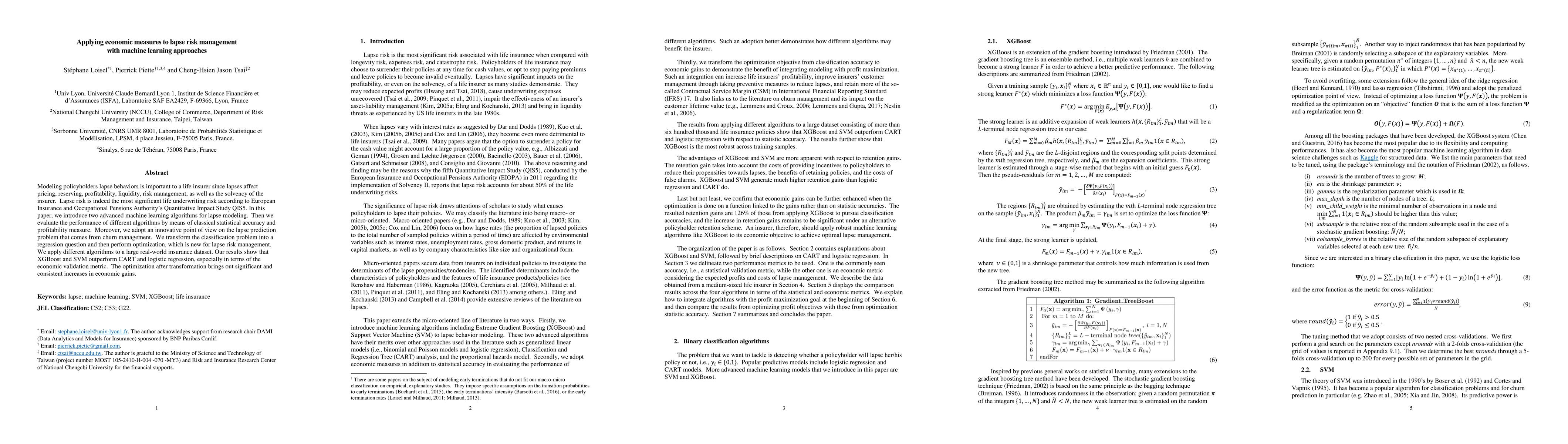 Modeling policyholders lapse behaviors is important to a life insurer since lapses affect pricing, reserving, profitability, liquidity, risk management, as well as the solvency of the insurer. Lapse risk is indeed the most significant life underwriting risk according to European Insurance and Occupational Pensions Authority's Quantitative Impact Study QIS5. In this paper, we introduce two advanced machine learning algorithms for lapse modeling. Then we evaluate the performance of different algorithms by means of classical statistical accuracy and profitability measure. Moreover, we adopt an innovative point of view on the lapse prediction problem that comes from churn management. We transform the classification problem into a regression question and then perform optimization, which is new for lapse risk management. We apply different algorithms to a large real-world insurance dataset. Our results show that XGBoost and SVM outperform CART and logistic regression, especially in terms of the economic validation metric. The optimization after transformation brings out significant and consistent increases in economic gains.