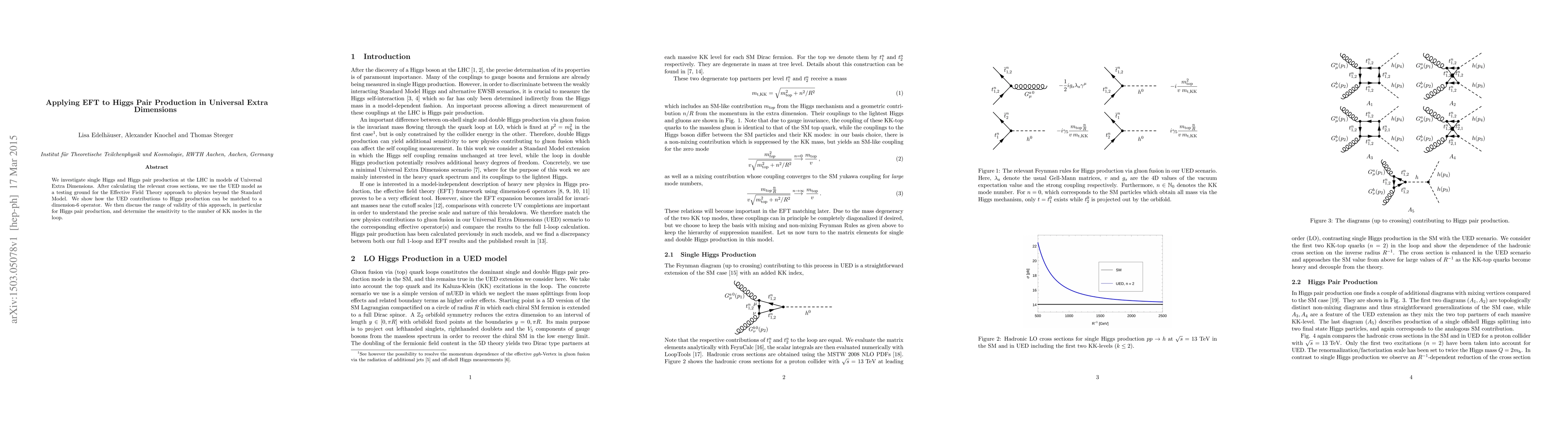 We investigate single Higgs and Higgs pair production at the LHC in models of Universal Extra Dimensions. After calculating the relevant cross sections, we use the UED model as a testing ground for the Effective Field Theory approach to physics beyond the Standard Model. We show how the UED contributions to Higgs production can be matched to a dimension-6 operator. We then discuss the range of validity of this approach, in particular for Higgs pair production, and determine the sensitivity to the number of KK modes in the loop.