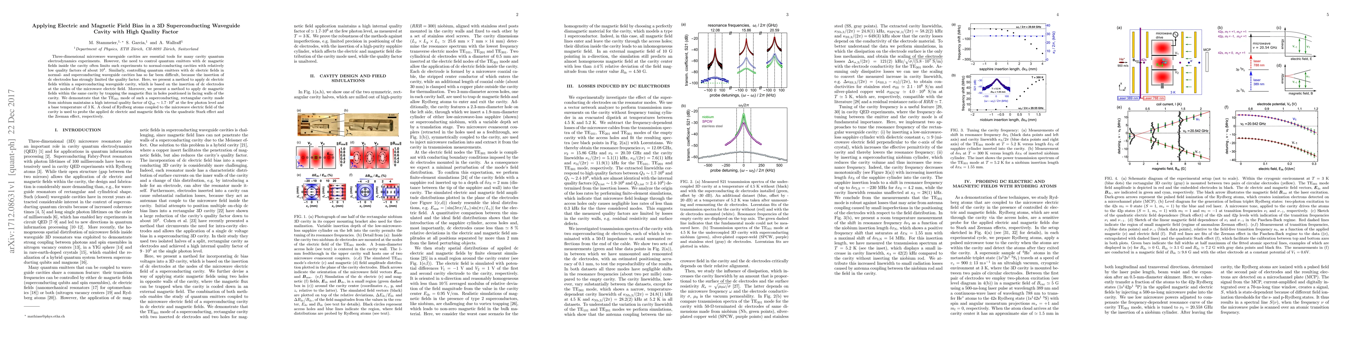 This paper introduces a method to apply both dc electric and magnetic fields within a 3D superconducting waveguide cavity, maintaining a high internal quality factor of $Q_{\text{int}} \sim 1.7 \cdot 10^6$ at $3~\text{K}$ and few photon levels, enabling advanced cavity quantum electrodynamics experiments.