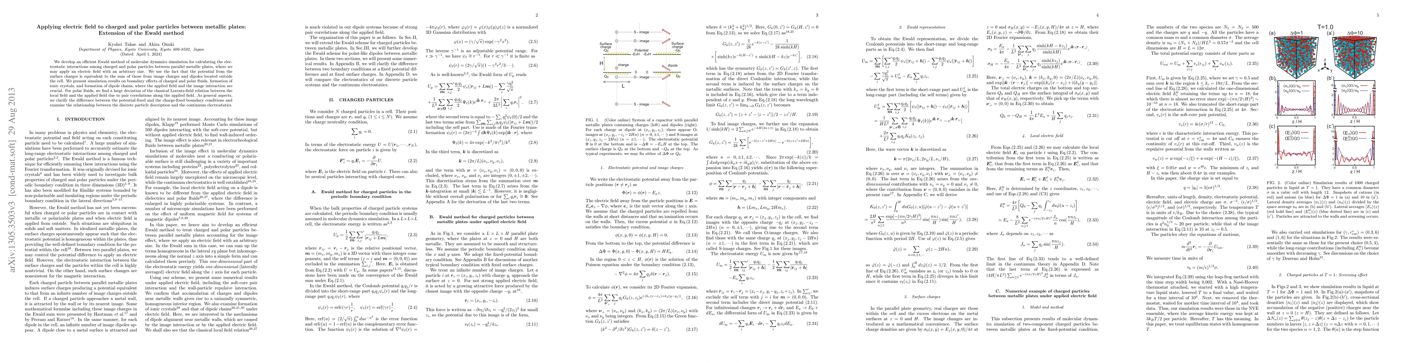 This paper develops an enhanced Ewald method for molecular dynamics simulations to calculate electrostatic interactions in charged and polar particles between metallic plates under an applied electric field. It highlights boundary effects, ionic crystal formation, and dipole chain formation, noting significant deviations from classical field relations due to pair correlations.