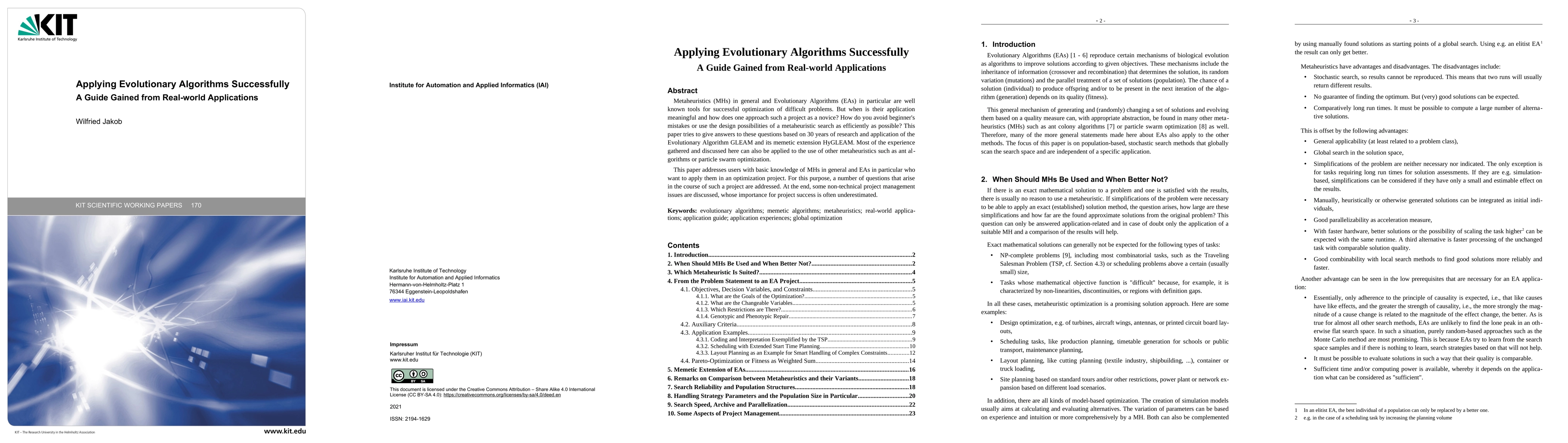 Metaheuristics (MHs) in general and Evolutionary Algorithms (EAs) in particular are well known tools for successful optimization of difficult problems. But when is their application meaningful and how does one approach such a project as a novice? How do you avoid beginner's mistakes or use the design possibilities of a metaheuristic search as efficiently as possible? This paper tries to give answers to these questions based on 30 years of research and application of the Evolutionary Algorithm GLEAM and its memetic extension HyGLEAM. Most of the experience gathered and discussed here can also be applied to the use of other metaheuristics such as ant algorithms or particle swarm optimization. This paper addresses users with basic knowledge of MHs in general and EAs in particular who want to apply them in an optimization project. For this purpose, a number of questions that arise in the course of such a project are addressed. At the end, some non-technical project management issues are discussed, whose importance for project success is often underestimated.