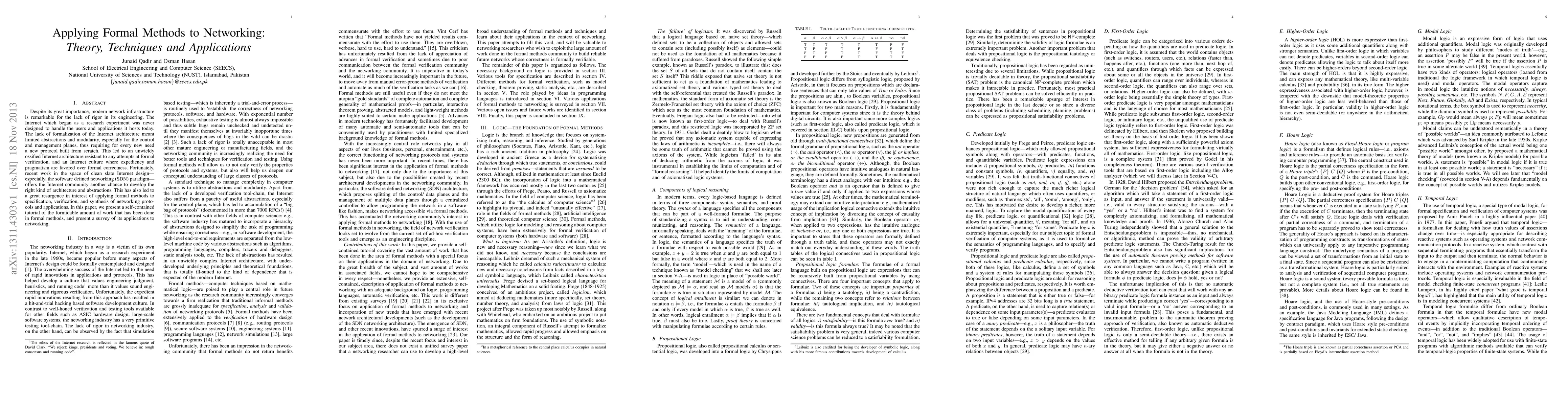 This paper surveys the application of formal methods to networking, highlighting their potential to improve internet architecture and design. It presents a tutorial on key work in formal methods and their applications to networking protocols and applications.