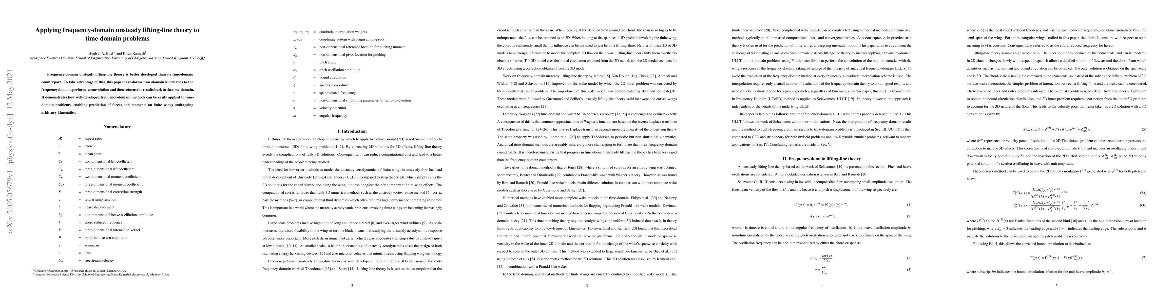 This paper transforms time-domain kinematics into the frequency domain, applies well-developed frequency-domain unsteady lifting-line theory, and returns results to the time-domain to predict forces and moments on finite wings with arbitrary motion.