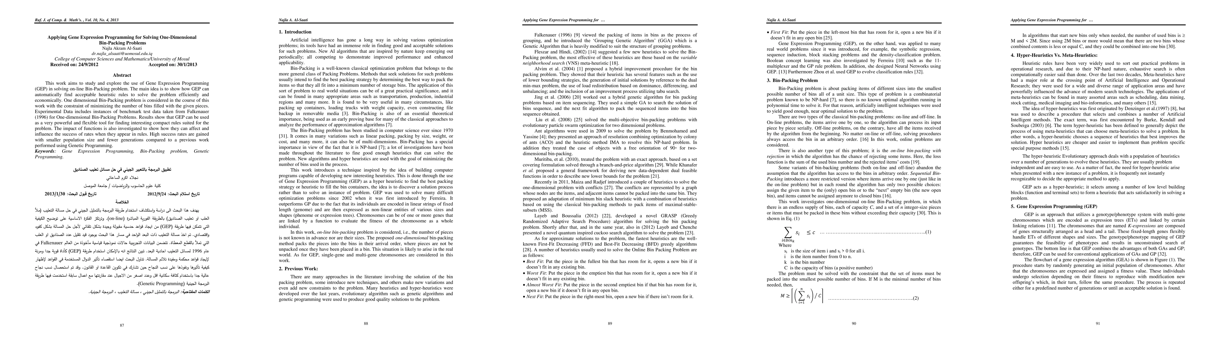 This paper investigates Gene Expression Programming (GEP) for solving the one-dimensional Bin-Packing problem, demonstrating its ability to efficiently find heuristic rules. Results indicate GEP outperforms previous Genetic Programming methods with higher success rates and fewer computational resources.