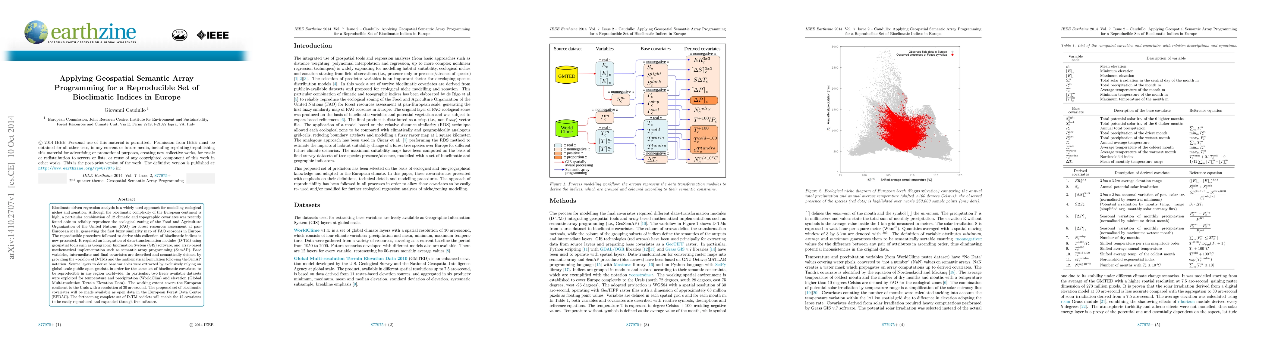 A new method for creating bioclimatic indices in Europe is presented, using geospatial semantic array programming to reproduce the ecological zoning of the Food and Agriculture Organization. The method uses publicly available global-scale data and will be made available as open data, enabling others to easily reproduce and expand the results.