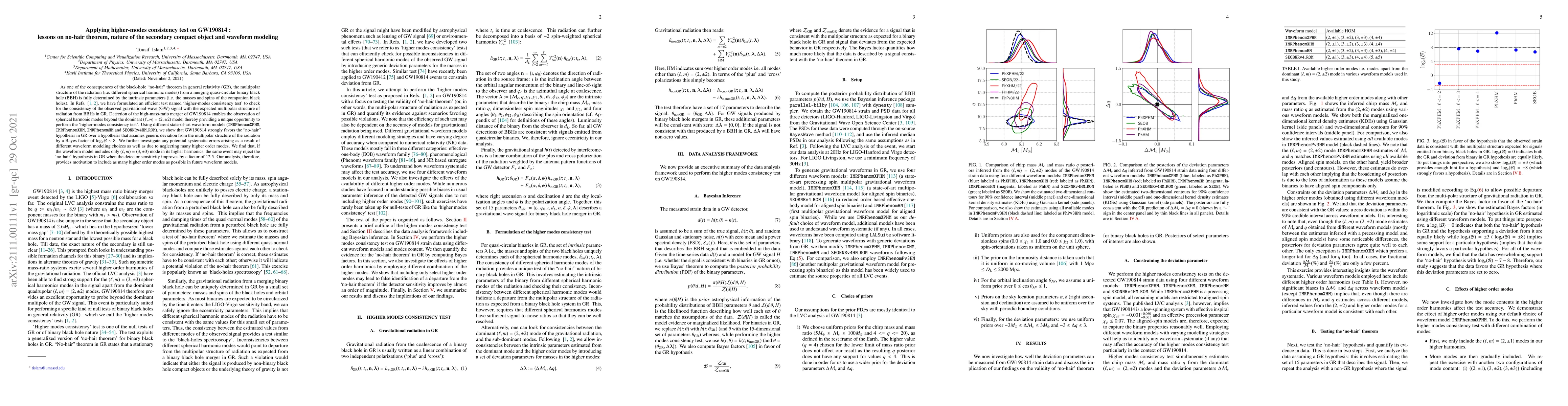 This paper applies a higher-modes consistency test to the GW190814 black hole merger, supporting the "no-hair" theorem in general relativity. The analysis favors the theorem over deviations in the multipolar structure, but suggests that future improvements in detector sensitivity could challenge this conclusion if higher-order modes are not adequately modeled.