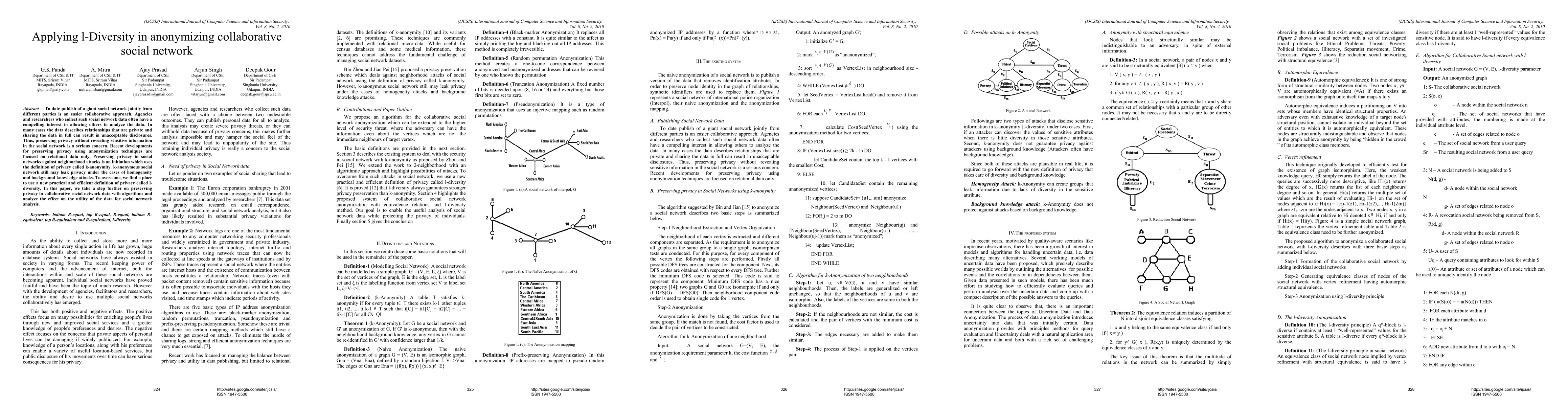 This paper explores the use of l-diversity to enhance privacy in collaborative social networks, addressing the limitations of k-anonymity in protecting against homogeneity and background knowledge attacks. The study proposes algorithms to implement l-diversity and evaluates their impact on data utility for social network analysis.