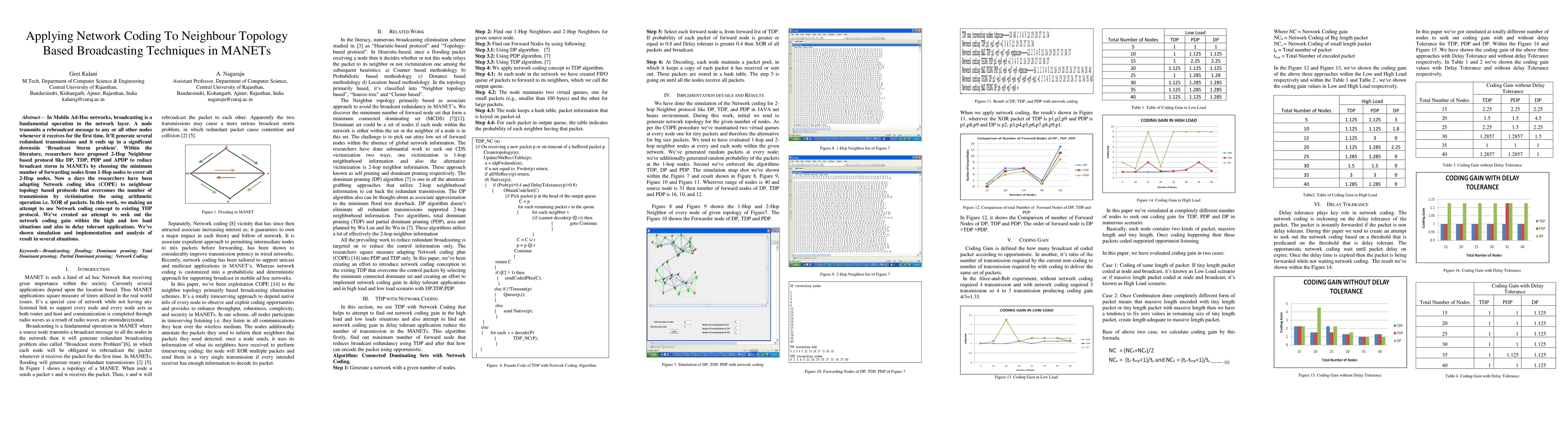 This research proposes using network coding in MANETs' broadcasting to mitigate the broadcast storm problem. It introduces 2-Hop Neighbour based protocols (DP, TDP, PDP, APDP) to minimize redundant transmissions by strategically selecting forwarding nodes from 1-Hop to cover 2-Hop nodes.