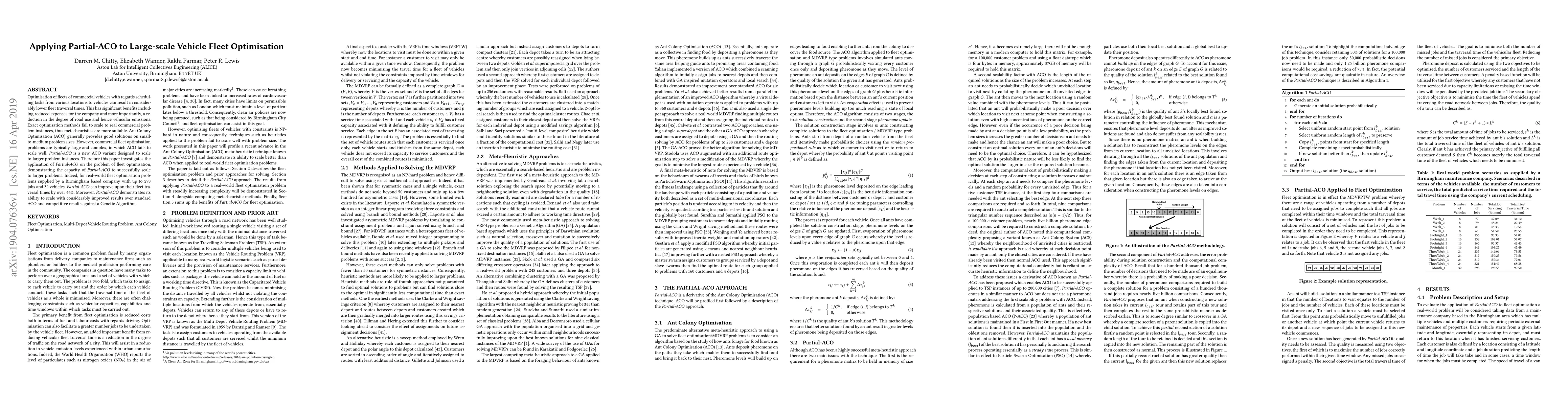 This paper explores the application of Partial-ACO, a scalable variant of Ant Colony Optimisation, to optimise large-scale commercial vehicle fleets, demonstrating significant reductions in traversal times and emissions. Results show Partial-ACO outperforms standard ACO and achieves competitive results against a Genetic Algorithm.