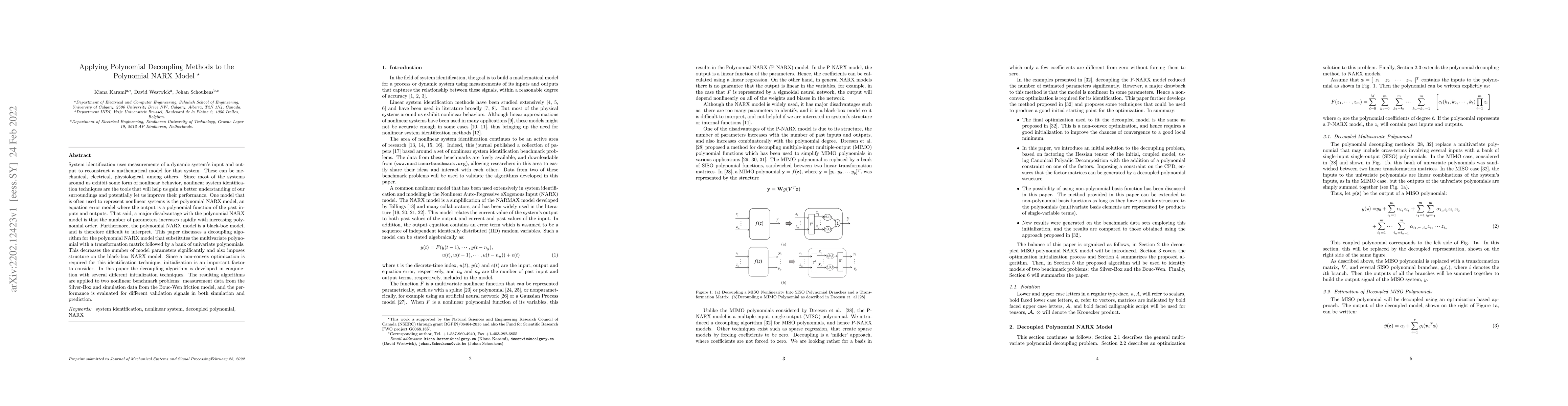 The novel approach to polynomial decoupling using Gaussian processes is presented, which improves the accuracy and robustness of non-linear system identification.