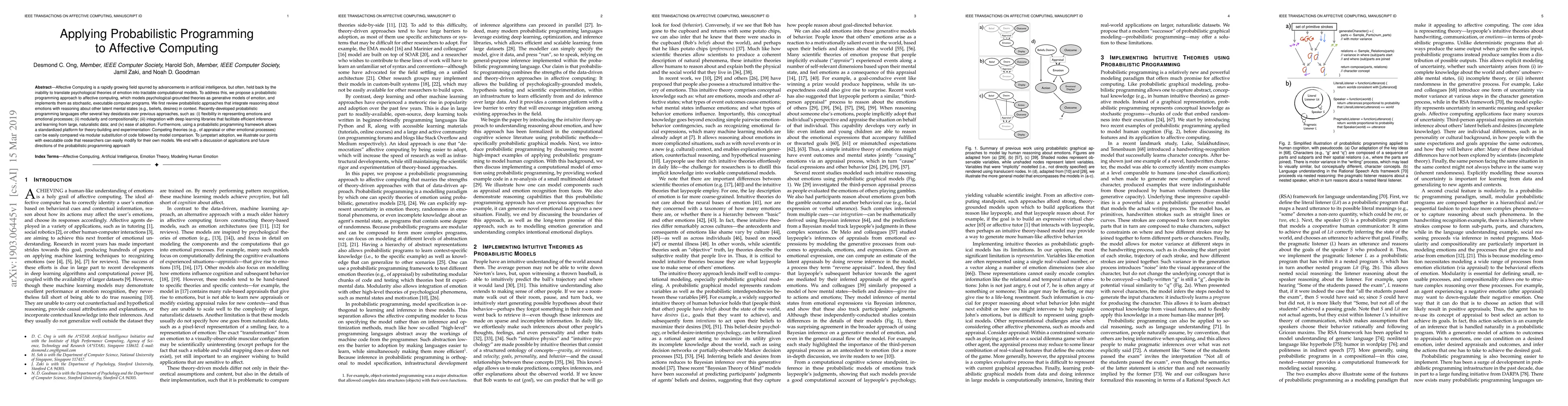 This paper proposes a probabilistic programming approach to affective computing, aiming to translate psychological theories of emotion into computational models. It highlights the advantages of using probabilistic programming languages for flexibility, modularity, integration with deep learning, and ease of adoption, providing a standardized platform for theory-building and experimentation.