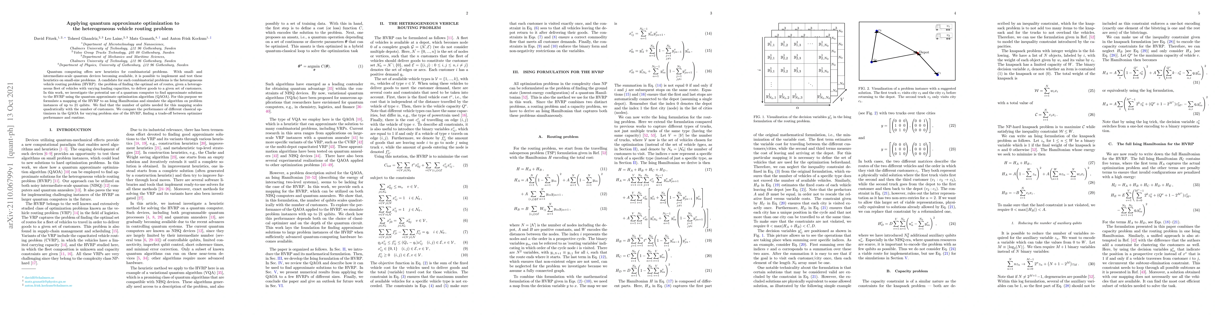 Researchers explored using quantum computing to solve the heterogeneous vehicle routing problem (HVRP) by applying the Quantum Approximate Optimization Algorithm (QAOA), finding a trade-off between optimizer performance and runtime in solving larger-scale HVRP instances.