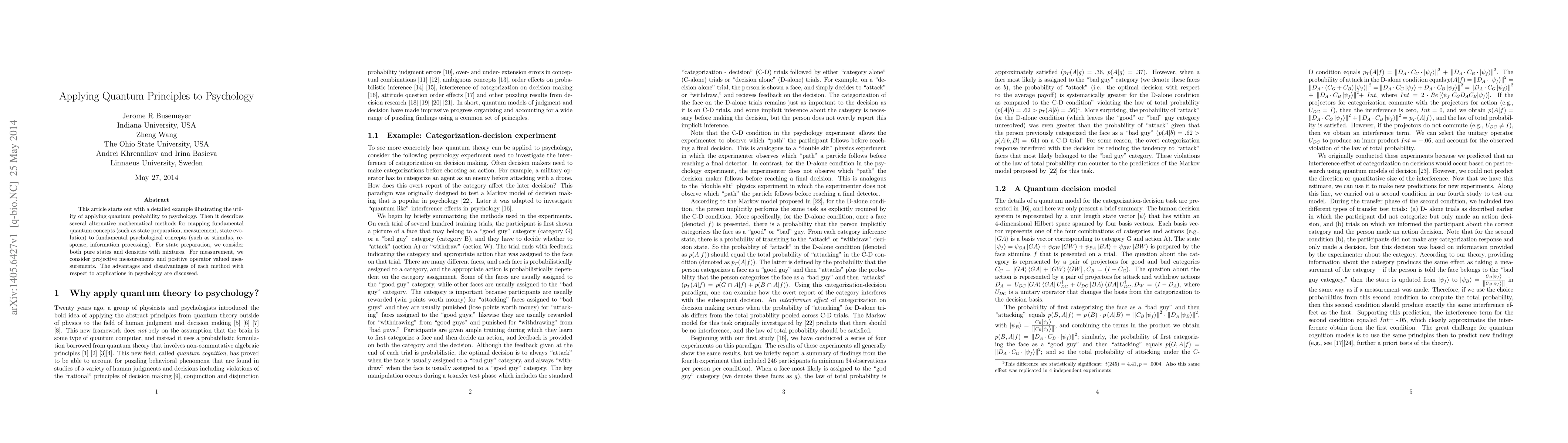 This article starts out with a detailed example illustrating the utility of applying quantum probability to psychology. Then it describes several alternative mathematical methods for mapping fundamental quantum concepts (such as state preparation, measurement, state evolution) to fundamental psychological concepts (such as stimulus, response, information processing). For state preparation, we consider both pure states and densities with mixtures. For measurement, we consider projective measurements and positive operator valued measurements. The advantages and disadvantages of each method with respect to applications in psychology are discussed.