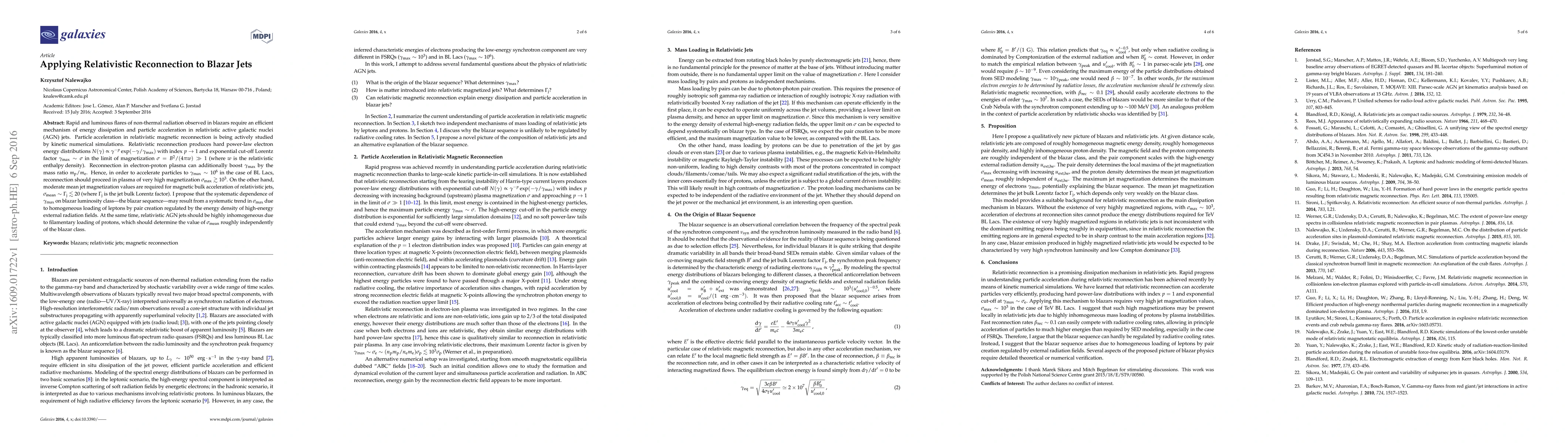 Rapid and luminous flares of non-thermal radiation observed in blazars require an efficient mechanism of energy dissipation and particle acceleration in relativistic active galactic nuclei (AGN) jets. Particle acceleration in relativistic magnetic reconnection is being actively studied by kinetic numerical simulations. Relativistic reconnection produces hard power-law electron energy distributions N(gamma) = N_0 gamma^(-p) exp(-gamma/gamma_max) with index p -> 1 and exponential cut-off Lorentz factor gamma_max ~ sigma in the limit of magnetization sigma = B^2/(4 pi w) >> 1 (where w is the relativistic enthalpy density). Reconnection in electron-proton plasma can additionally boost gamma_max by the mass ratio m_p/m_e. Hence, in order to accelerate particles to gamma_max ~ 10^6 in the case of BL Lacs, reconnection should proceed in plasma of very high magnetization sigma_max >~ 10^3. On the other hand, moderate mean jet magnetization values are required for magnetic bulk acceleration of relativistic jets, sigma_mean ~ Gamma_j <~ 20 (where Gamma_j is the jet bulk Lorentz factor). I propose that the systematic dependence of gamma_max on blazar luminosity class -- the blazar sequence -- may result from a systematic trend in sigma_max due to homogeneous loading of leptons by pair creation regulated by the energy density of high-energy external radiation fields. At the same time, relativistic AGN jets should be highly inhomogeneous due to filamentary loading of protons, which should determine the value of sigma_mean roughly independently of the blazar class.