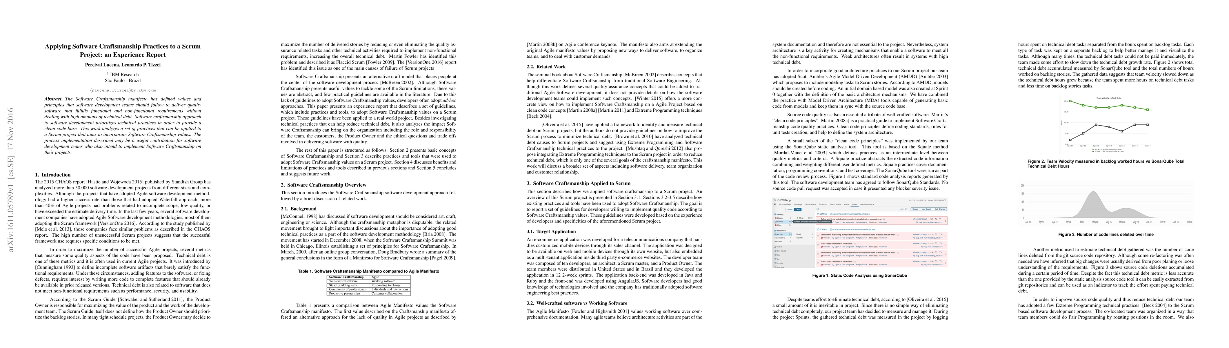 This paper explores integrating Software Craftsmanship principles into a Scrum project to enhance code quality and reduce technical debt. The experience report provides valuable insights and practices for teams aiming to adopt these principles within their agile frameworks.