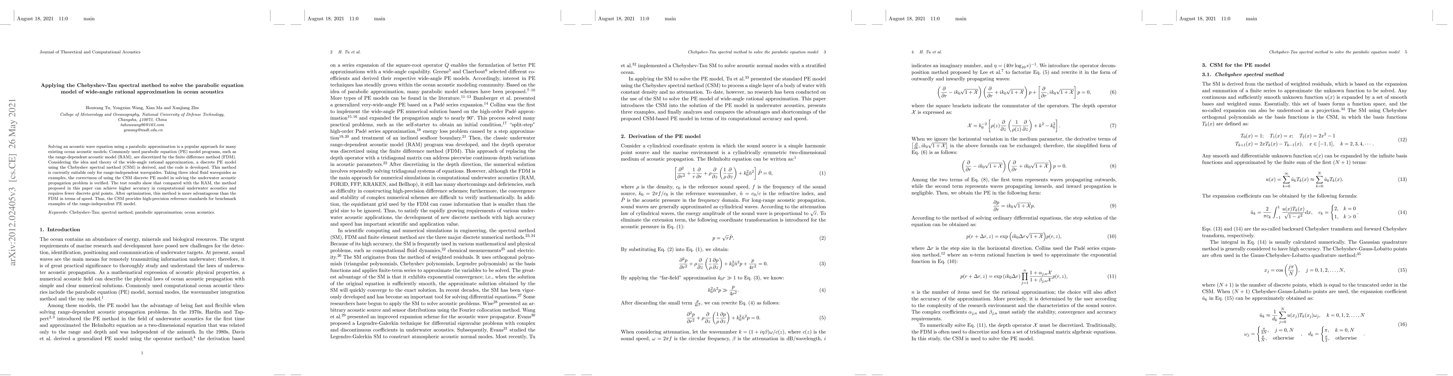 A new method for solving parabolic equations in ocean acoustics uses the Chebyshev spectral method to achieve higher accuracy with fewer grid points than existing methods.