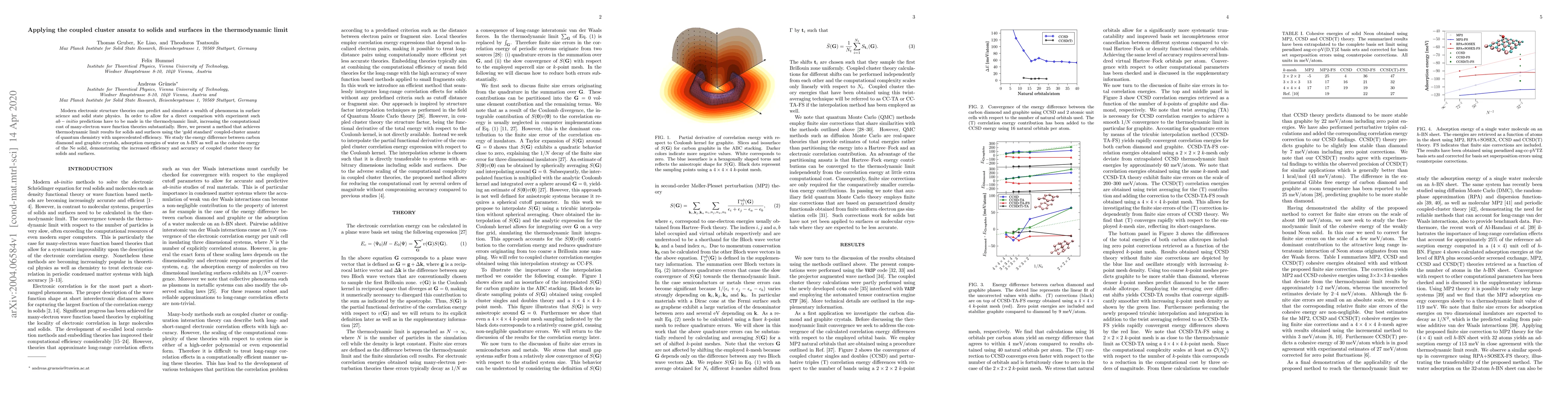 This paper introduces a highly efficient method for applying the coupled-cluster ansatz to predict electronic structures in solids and surfaces in the thermodynamic limit. The study demonstrates its accuracy and efficiency through applications to carbon diamond vs. graphite, water adsorption on h-BN, and the cohesive energy of Ne solid.