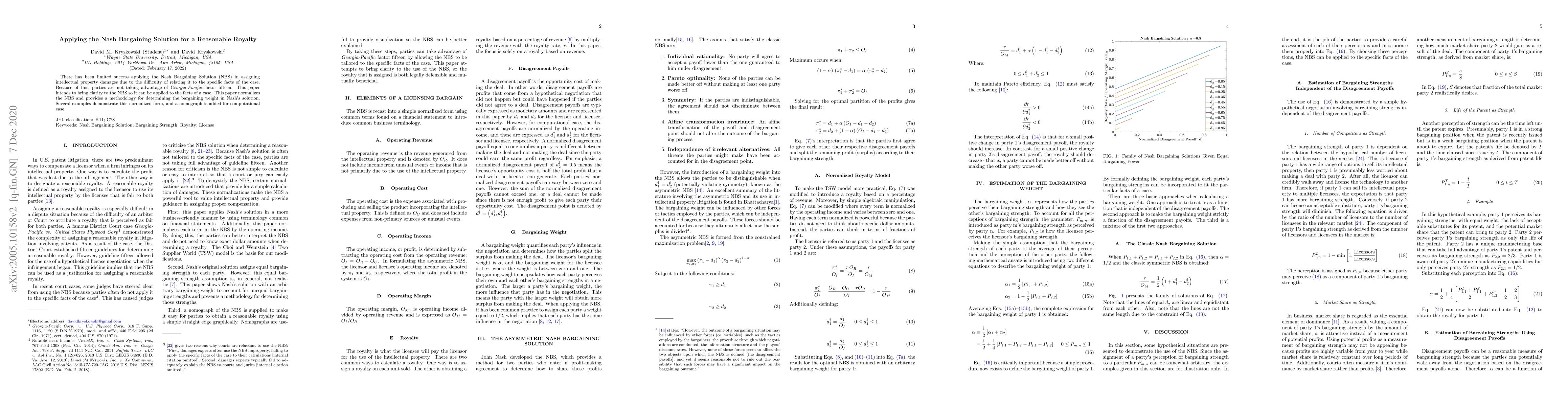 This paper clarifies the application of the Nash Bargaining Solution (NBS) for determining reasonable royalties in intellectual property disputes, providing a methodology for calculating bargaining weights and demonstrating its use with examples and a computational nomograph.