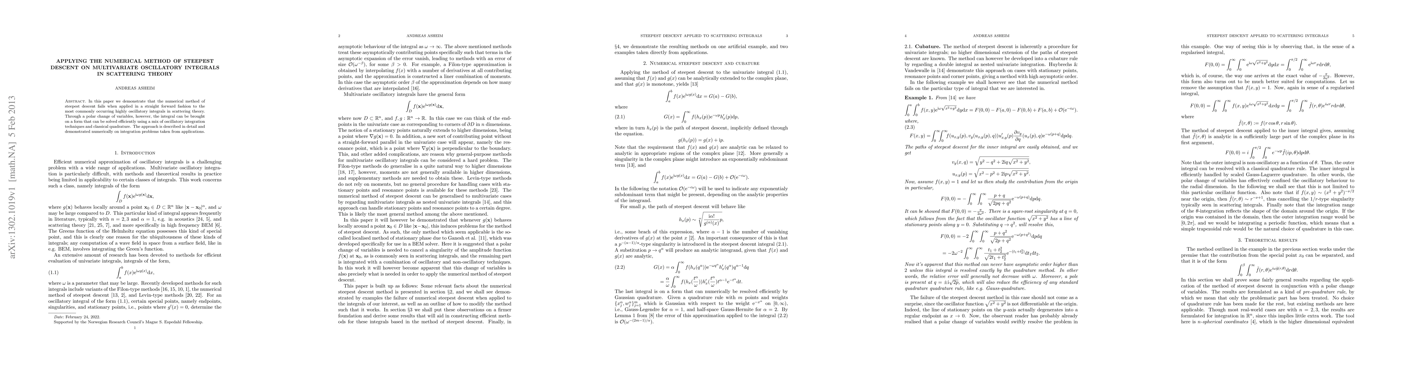 This paper shows that the steepest descent method does not work directly for oscillatory integrals in scattering theory but can be effectively solved by transforming the integral via polar coordinates, combining oscillatory integration techniques with classical quadrature. The method is illustrated with numerical examples from applications.