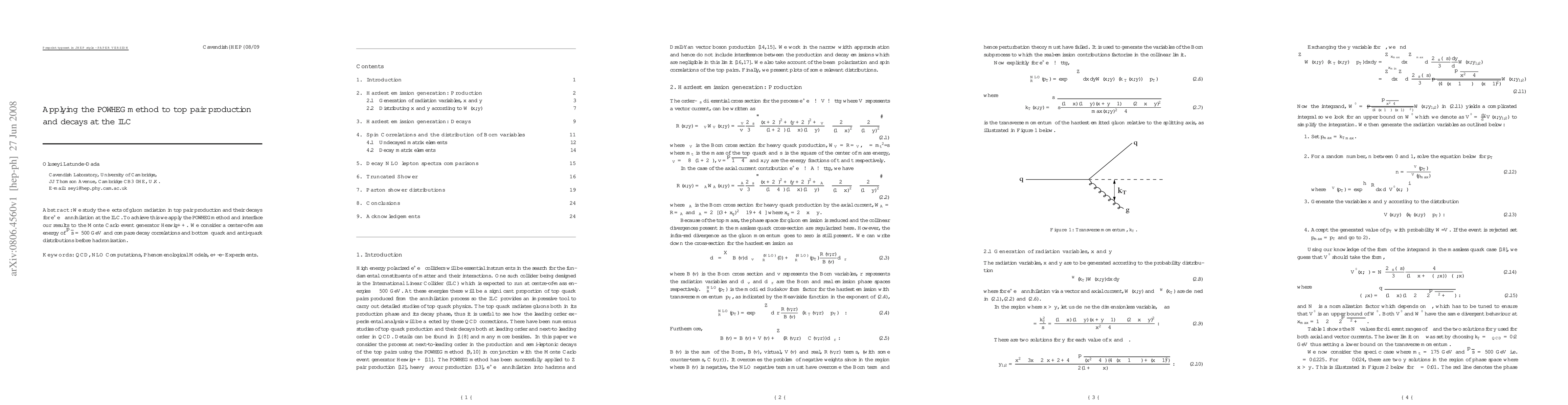 We study the effects of gluon radiation in top pair production and their decays for e+e- annihilation at the ILC. To achieve this we apply the POWHEG method and interface our results to the Monte Carlo event generator Herwig++. We consider a center-of-mass energy of \sqrt{s}=500 GeV and compare decay correlations and bottom quark and anti-quark distributions before hadronization.